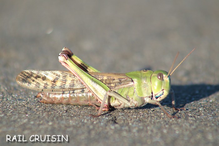 このトノサマバッタを見ていてふと思いました。飛行機って胴体はバッタで羽はトンボだよな〜・・・と。特にATR機に代表されるように最近のプロペラ機は胴体から翼が生えているのではなく、胴体の上を翼が橋渡しのように、機体が翼を背負うような形でついていますので余計トンボっぽいんですよね。