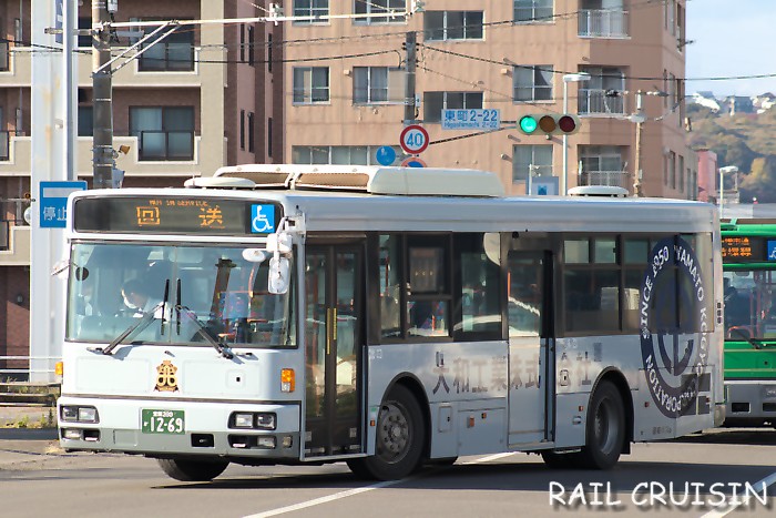 さてこのクルマの広告、どこか見覚えが・・・。そう、以前ご紹介した室蘭230あ227と同じ広告主です。高速車だけでなく、一般路線車にも同じ広告が存在していました。 ただ、エアロエースの方は白ベースでしたが、こちらのベースカラーは薄いブルーでしょうかね。そしてルーフは関東バス時代そのままの塗装です。