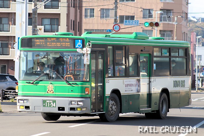 今日は道南バスから1台ご紹介です。 今日ご紹介するのは道南バス室蘭東営業所所属の室蘭200か1194、日産ディーゼル+西日本車体工業96MC・B−T スペースランナーUA・ノンステップです。